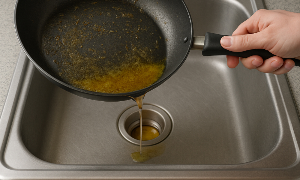 Cách xử lý đúng: Đổ mỡ thừa vào chai/lọ, chờ nguội rồi bỏ rác. Nếu nhiều, gom lại dùng làm… nến chơi cũng được (nếu bạn siêng đến vậy).