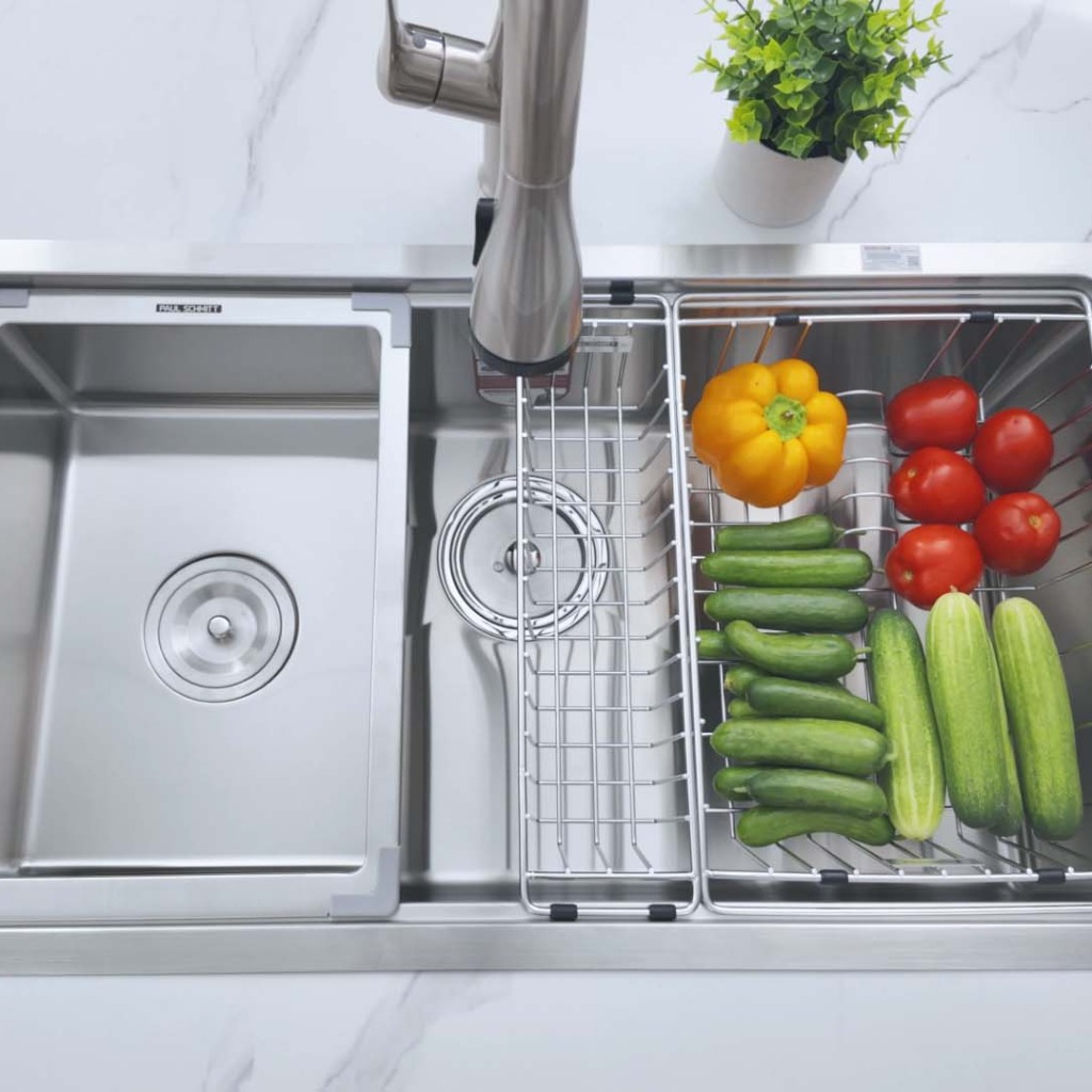 Không chỉ vậy, bạn cũng sẽ được tặng kèm một chiếc rổ inox tiện lợi để đựng rau củ, thực phẩm hoặc bát đĩa cho ráo nước.
