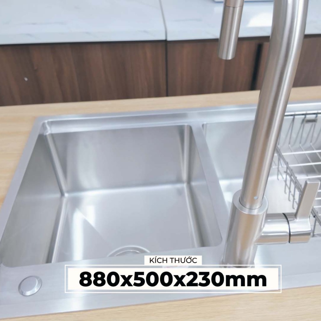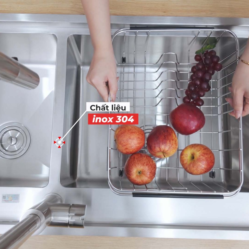 Với thiết kế này, chậu vừa đẹp kiểu Tây – vừa tiện kiểu ta, rất phù hợp với bếp mở hoặc nhà dùng nhiều nồi to.