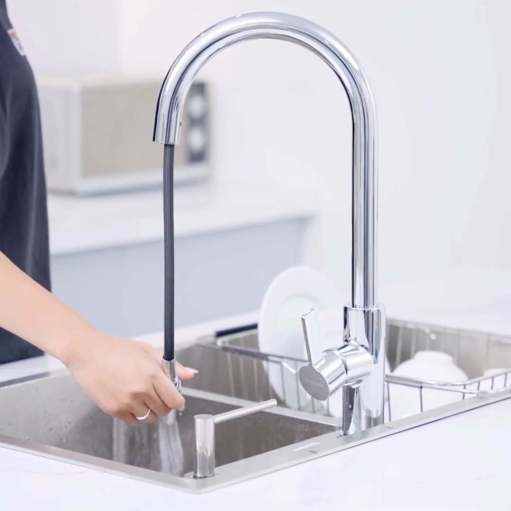 Phun bọt khí: dòng nước nhẹ, tiết kiệm nước, không bắn tung tóe – lý tưởng để rửa rau củ, ly chén