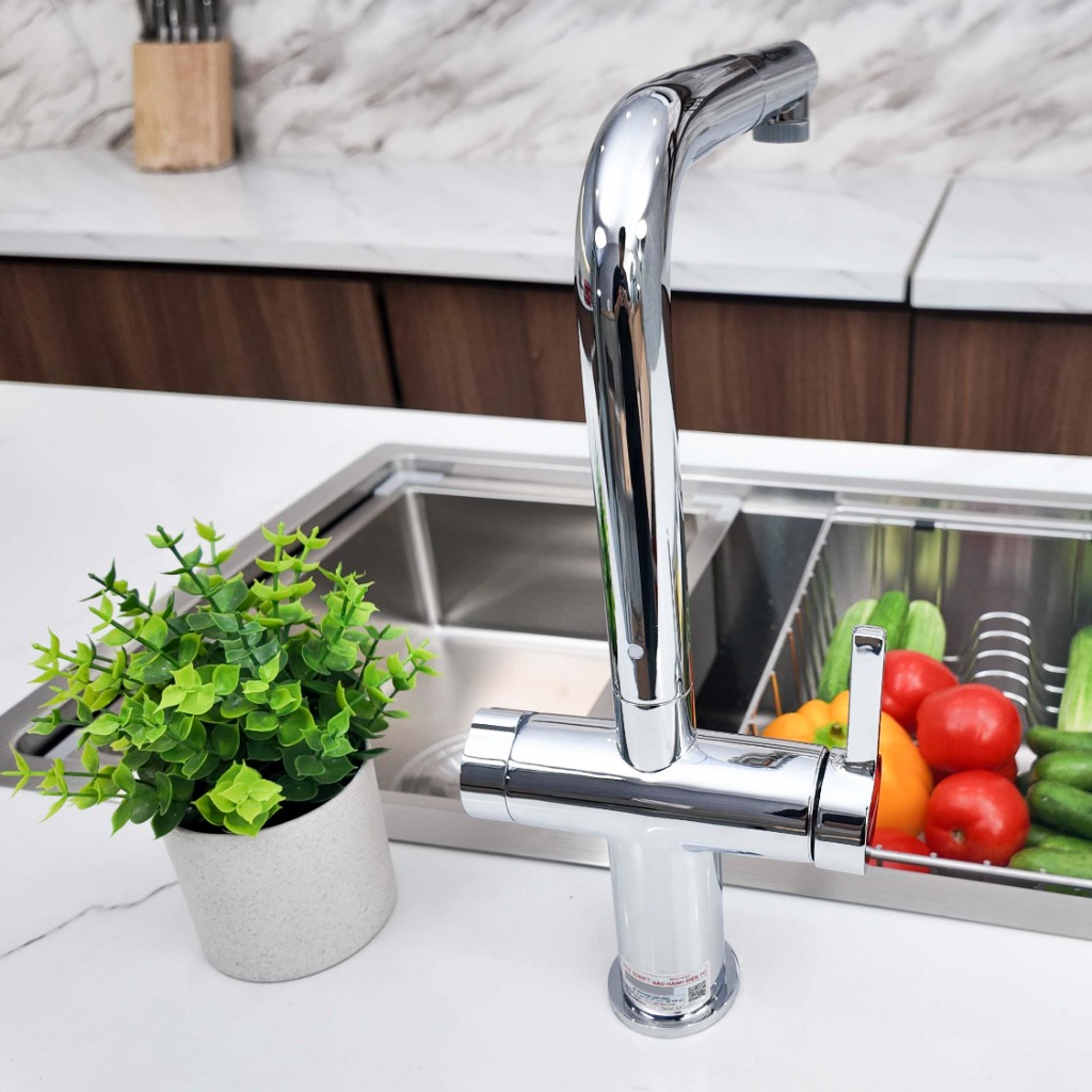 Hệ thống nóng lạnh cho phép điều chỉnh nhiệt độ nước một cách linh hoạt, phù hợp với mọi nhu cầu sử dụng: từ rửa rau củ bằng nước ấm đến vệ sinh bát đĩa hiệu quả với nước nóng.