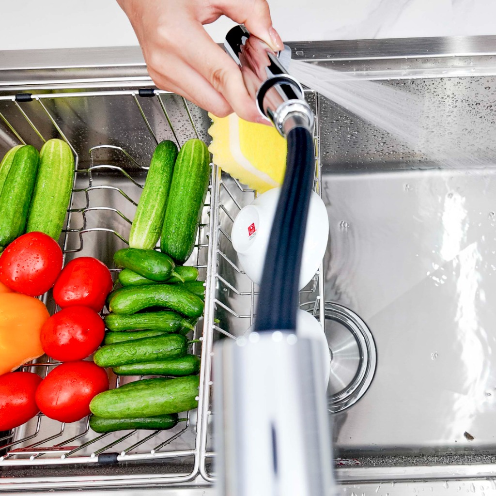 Dòng nước nhẹ nhàng, đều đặn, giúp làm sạch rau củ và thực phẩm mà không gây tổn hại đến kết cấu của thực phẩm. Đây là lựa chọn lý tưởng cho những ai quan tâm đến việc giữ trọn độ tươi ngon khi rửa rau quả.
